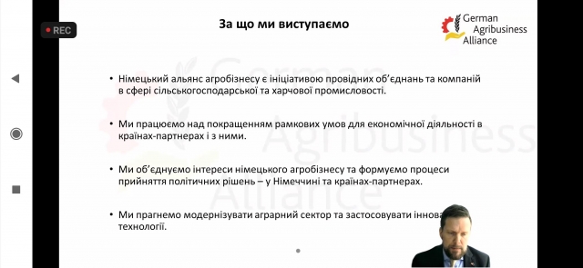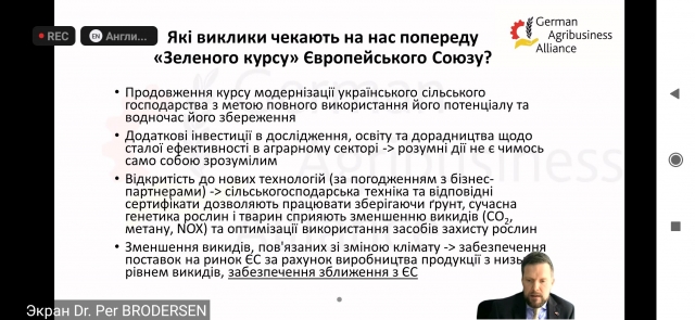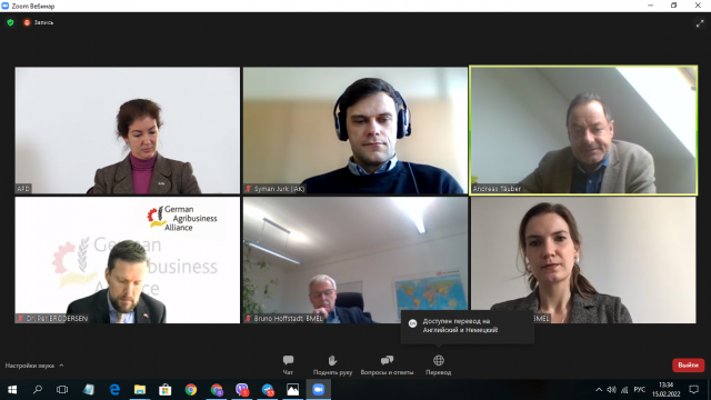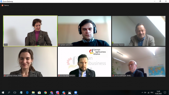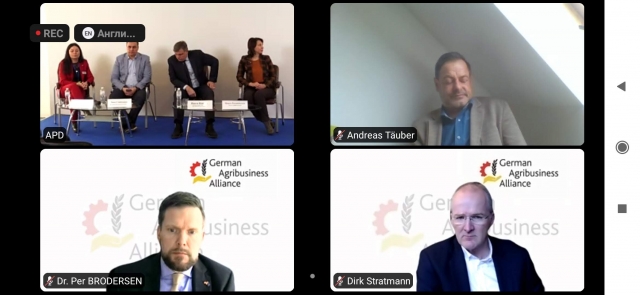В рамках реалізації Угоди про асоціацію між Україною та Європейським Союзом, аграрний сектор в Україні продовжує проходити комплексний курс реформ, що також передбачає регулярне обговорення питань аграрної політики в Європейському Союзі. Сільське господарство ЄС стикається з новими вимогами та викликами. Запровадження Європейського Зеленого курсу передбачає важливі зміни в аграрному виробництві та суттєво вплине на подальший розвиток торгівлі сільськогосподарською продукцією. Особливого значення набуває сталий підхід до подальшого розвитку сільського господарства, який має одночасно враховувати політичне бачення, очікування аграрного бізнесу, рекомендації аграрної науки та потреби сільського населення. 15 лютого 2022 року в рамках міжнародної виставки «АгроВесна 2022» відбувся політичний дискусійний захід у гібридному форматі на тему: «Зелений курс та сталий розвиток у сільському господарстві – можливості та виклики для України», в якому взяли участь співробітника кафедри економічної теорії НУБіП України та учасники навчально-наукової лабораторії економічної теорії та біоекономіки НУБіП України професор Микола Талавиря та доцент Інна Гуща. З привітальними словами виступили Тарас Висоцький, Перший заступник Міністра аграрної політики та продовольства України, Д-р. Офелія Нік, Парламентський статс-секретар Федерального міністра продовольства і сільського господарства ФРН, Анка Фельдгузен, Надзвичайний і Повноважний Посол Федеративної Республіки Німеччина в Україні. З ключовими доповідями виступили Д-р. Андреас Тойбер, Федеральне міністерство продовольства і сільського господарства ФРН «Зелений курс та сталий розвиток у сільському господарстві – виклики та актуальні дискусії в Німеччині», Д-р. Пер Бродерсен, Альянс німецького агробізнесу «Перспективи для аграрного бізнесу в Україні – бачення Альянсу німецького агробізнесу» В панельній дискусії прийняли участь Д-р. Андреас Тойбер, Федеральне міністерство продовольства і сільського господарства ФРН NN, Міністерство аграрної політики та продовольства України (tbc.), Анна Передерій, голова Регіональної групи СНД Асоціації «VDMA Landtechnik», Павло Коваль, генеральний директор ВГО «Українська аграрна конфедерація», член ВАФ, Ольга Ходаківська, заступник директора ННЦ НААН «Інститут аграрної економіки», Іван Слободяник, виконавчий директор Всеукраїнської асоціації громад. З заключним словом виступив Франк Мюллер, аташе з аграрних питань Посольства Федеративної Республіки Німеччина в Україні. Модератором даного заходу була Марія Ярошко, в.о. керівника проєкту АПД.