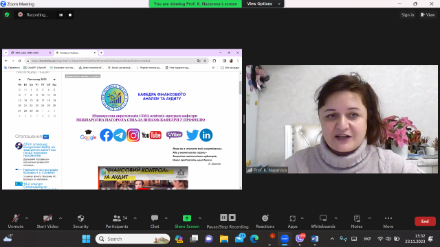 Гарант ОПП «Аналітичне і обліково-правове забезпечення бізнесу» професор Інна ЛАЗАРИШИНА зосередила увагу учасників Всеукраїнського круглого столу на реалізації міждисциплінарного підходу у підготовці бакалаврів обліку і оподаткування за ОПП «Аналітичне і обліково-правове забезпечення бізнесу».