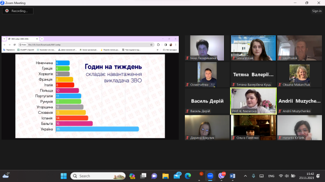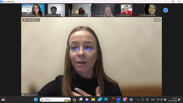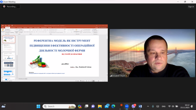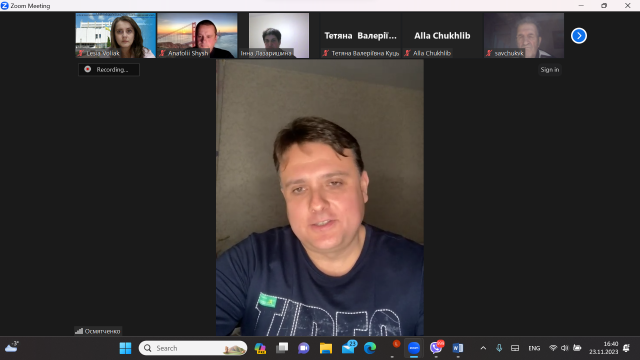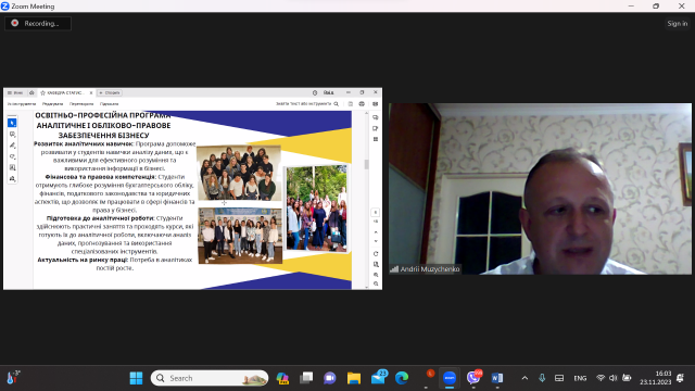 У своєму виступі в. о. завідувача кафедри статистики та економічного аналізу, доцент Андрій МУЗИЧЕНКО охарактеризував забезпечення компетентнісного підходу у підготовці бакалаврів за освітньою програмою «Аналітичне і обліково – правове забезпечення бізнесу» у НУБіП України. Також він презентував результати анкетування - опитування здобувачів вищої освіти щодо якості освітньої програми «Аналітичне і обліково-правове забезпечення бізнесу» для 1-3 курсу ОС «Бакалавр» (Посилання на анкету https://docs.google.com/forms/d/1HkLIGL7oE6SLK07QmfGAxxkS5quU3AhAltzyZkUFfEg/edit )