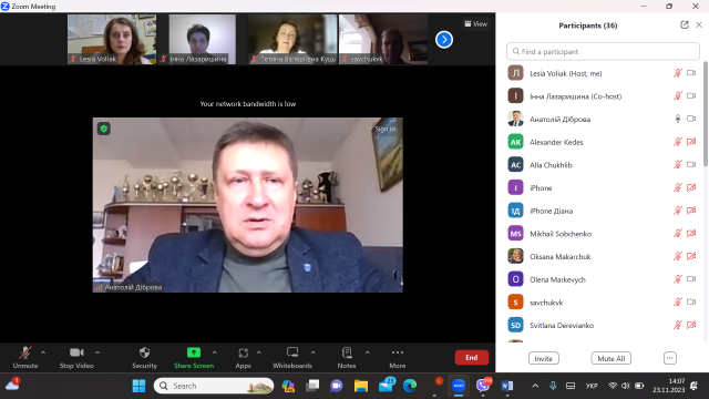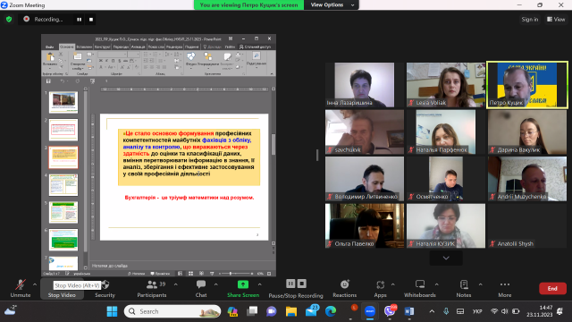 Відбувся обмін думками й активне обговорення, у якому прийняли участь також гаранти і члени проектних груп освітньо-професійних програм «Аналітичне і обліково-правове забезпечення бізнесу», «Облік і аудит» підготовки здобувачів першого (бакалаврського) та другого (магістерського) рівнів вищої освіти із спеціальності 071 «Облік і оподаткування», представники груп забезпечення освітніх програм першого (бакалаврського) та другого (магістерського) рівнів вищої освіти спеціальності 071 «Облік і оподаткування», здобувачі першого (бакалаврського) рівня вищої освіти ОПП «Аналітичне і обліково-правове забезпечення бізнесу», студенти 1, 2, 3 курсів ОПП «Аналітичне та обліково-правове забезпечення бізнесу» спеціальності 071 «Облік і оподаткування», викладачі та студенти Ірпінського фахового коледжу НУБіП України, Рівненського фахового коледжу НУБіП України та здобувачі третього (освітньо - наукового) ступеня вищої освіти спеціальності 071 «Облік і оподаткування».
