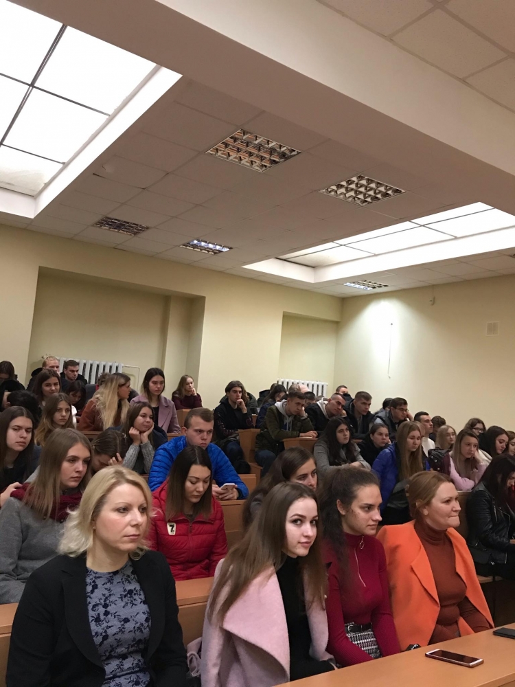На початку лекції, завідувач кафедри фінансів Надія Давиденко зазначила, що майбутній розвиток України повною мірою залежить від успіху тих, хто завтра відіграватиме провідну роль у суспільних процесах, тобто від сьогоднішніх студентів та аспірантів. Особливо це гостро питання стоїть в умовах децентралізації, вона повинна бути сформована, аби молодій людині було цікаво розвивати себе, реалізувати себе і, головне, залишатися і бачити себе в майбутньому громади чи нашої країни.