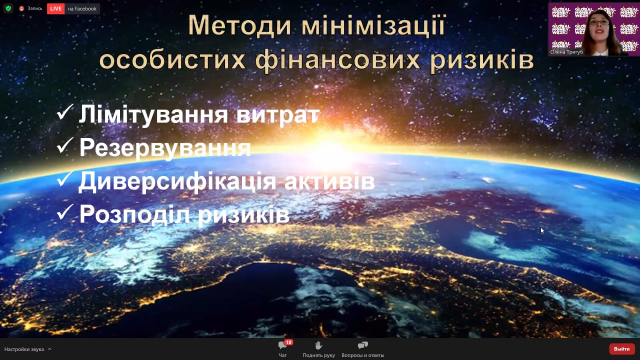 26 березня 2021 року студенти відвідали вебінар "Стрес-тест особистих фінансів, або як забезпечити фінансову стійкість в умовах невизначеності" з нагоди 30-ліття Національного банку України та проведення в Україні міжнародної інформаційної кампанії з фінансової обізнаності "Всесвітній тиждень грошей" (Global Money Week). На заході нам розповіли про те, які є види заощаджень та як їх групувати, щоб ефективно управляти. Проінформували що робити в умовах невизначеності, як контролювати свої фінанси та як забезпечувати фінансову стійкість в умовах невизначеності. Визначали свій грошовий тип особистості. Дізналися про методи мінімізації особистих фінансових ризиків, які допоможуть нам в майбутньому забезпечити фінансову стійкість у довгостроковій перспективі. В кінці вебінару була проведена невеличка вікторина в Kahoot!