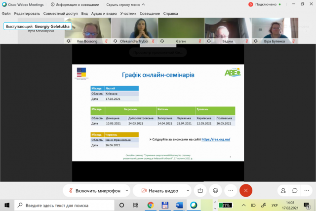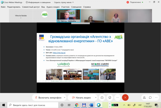 17 лютого 2021 р. викладачі кафедри економічної теорії д.е.н., професор Байдала В.В., д.е.н., доцент Бутенко В.М., а також аспіранти спеціальностей 051 «Економіка» та 071 «Менеджмент» відвідали он-лайн семінар «Сприяння енергетичній безпеці та сталому розвитку місцевих громад в Україні», організований Біоенергетичною асоціацією України. У заході, присвяченому надзвичайно актуальним питанням енергетичної безпеки країни, взяли участь зарубіжні спікери, українські дослідники, а також представники територіальних громад та бізнесу. Аспіранти мали можливість почути низку цікавих ідей для своїх наукових досліджень. На думку учасників, ці зустрічі сприяють зміцненню зв’язків між освітянами, науковцями, громадянським суспільством та бізнесом.