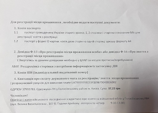 Студенти 1 курсу обов’язково мають зареєструватися за місцем фактичного проживання ‒ в гуртожитку. Студенти які мають паспорт в формі ID-карти зобов’язані мати при собі довідку про зняття з реєстрації місця проживання (додаток 16) або довідку про реєстрацію місця проживання особи (додаток 13).
