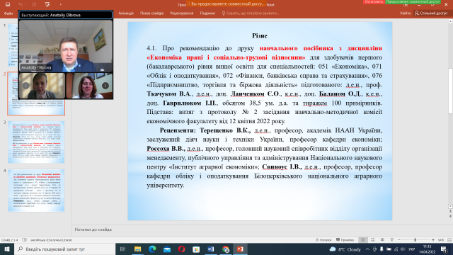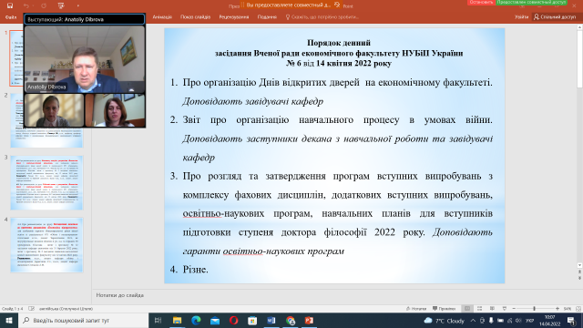 14 квітня 2022 року відбулося планове засідання вченої ради економічного факультету.