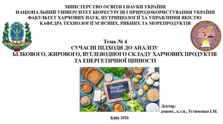 «СУЧАСНІ ПІДХОДИ ДО АНАЛІЗУ БІЛКОВОГО, ЖИРОВОГО, ВУГЛЕВОДНОГО СКЛАДУ ХАРЧОВИХ ПРОДУКТІВ ТА ЕНЕРГЕТИЧНОЇ ЦІННОСТІ»