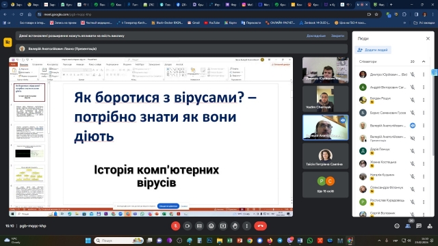 Валерій Лахно розпочав з самих головних понять, що таке комп'ютерні віруси і кібербезпека та захист інформації вцілому, оскільки саме віруси становлять серйозну загрозу для інформаційної безпеки сьогодні, вони можуть пошкодити файлову систему, вкрасти конфіденційні дані тощо. Майбутні абітурієнти змогли дізнатись під час вебінару: як діють віруси, методи їх поширенння та можливі наслідки, практичні поради щодо запобігання і виявлення вірусів, як боротися з вірусами, щоб вони не завдали шкоди.