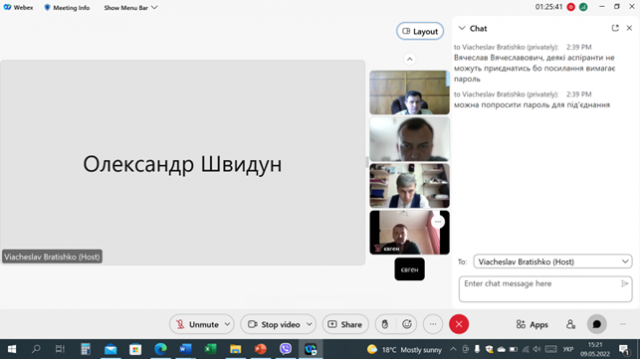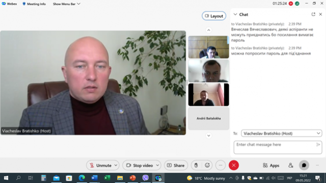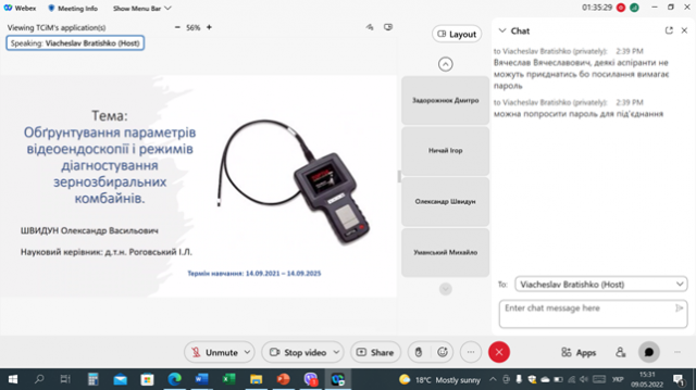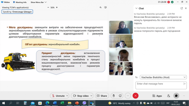 6 травня 2022 року за головування Вячеслава Братішка на базі механіко-технологічного факультету розпочалася онлайн-атестація здобувачів наукового ступеня доктора філософії зі спеціальності 133 «Галузеве машинобудвання» аспірантів кафедри технічного сервісу та інженерного менеджменту імені М. П. Момотенка.