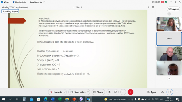 Весняна атестація аспірантів кафедри технічного сервісу та інженерного менеджменту імені М. П. Момотенка