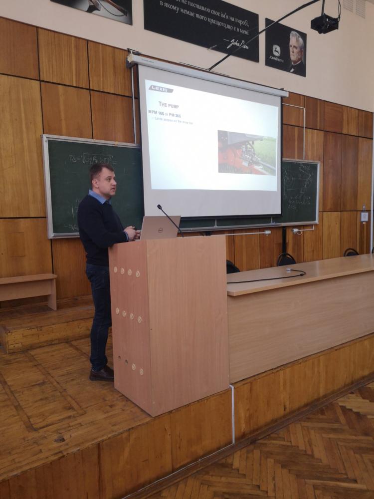 На лекції були присутні декан механіко-технологічного факультету Вячеслав БРАТІШКО, завідувач кафедри сільськогосподарських машин та системотехніки ім. П.М. Василенка Юрій Гуменюк та співробітники цієї кафедри доцент Володимир Онищенко та асистент Наталія ГАРКУША, завідувач кафедри надійності машин Андрій НОВІЦЬКИЙ та доцент цієї кафедри Зіновій РУЖИЛО, доцент кафедри технічного сервісу та інженерного менеджменту ім. М.П.Мамотенка Олена ДЕВЯТКО.