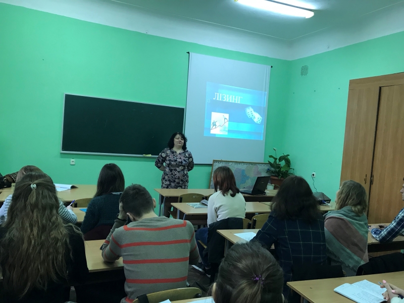 2 квітня 2018р. кандидат економічних наук, доцент кафедри аграрного консалтингу і туризму Стефанія Іванівна Мосіюк провела відкриту лекцію з дисципліни «Економіка і організація аграрного сервісу» на тему «Лізинг як вид підприємницької діяльності» для студентів магістратури спеціальності «Захист рослин» факультету захисту рослин, біотехнологій та екології. Перш за все, лектор розпочала з дискусії щодо попередньо вивченого матеріалу, та акцентувала увагу на здійсненні підприємницької діяльності в аграрній сфері, а саме покращенні матеріально- технічної бази товаровиробників. Було закцентовано увагу на актуальності вивчення лізингової діяльності та визначення всіх плюсів та мінусів, а також проведено аналогію з орендою та кредитуванням. Під час проведення лекції було використано мультимедійну техніку.