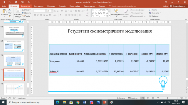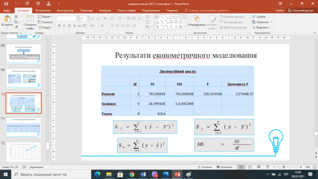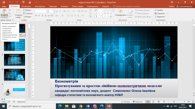 Відбулася відкрита лекція к.е.н., доцента Симоненко Олени Іванівни з дисципліни «Економетрія» на тему «Прогнозування за простою лінійною економетричною моделлю»