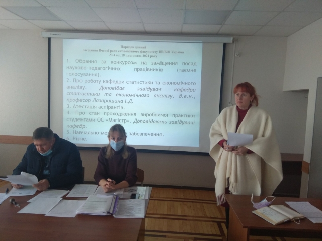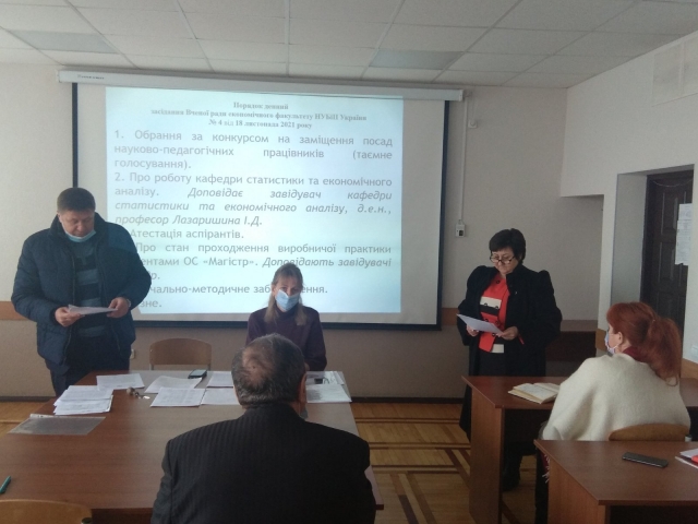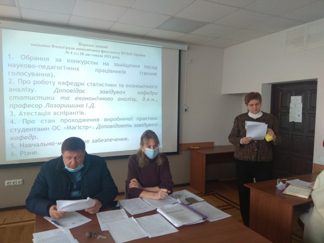 18 листопада 2021 року відбулося засідання вченої ради економічного факультету в очному режимі. До порядку денного були включені наступні питання:
