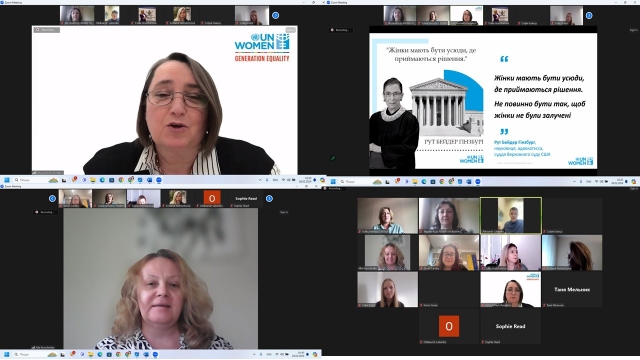 Галина Мещерякова, проектна менеджерка, голова структурного підрозділу з питань гендерно орієнтованого врядування ООН Жінки в Україні, у своїй промові наголосила, що за даними ООН жінки становлять 46% державних службовців у всьому світі, але лише 31% з них на керівних посадах і 38 % керівників. Це складає розрив у 15,8% між чоловіками та жінками на лідерських позиціях. Станом на 1 липня 2023 року лише 23,1% членів Кабінету міністрів у всьому світі становлять жінки.