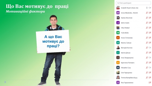 На занятті у форматі ZOOM-конференції були присутні в.о. завідувача кафедри статистики та економічного аналізу к.е.н., доцент Андрій Музиченко, д.е.н., професори кафедри статистики та економічного аналізу Інна Лазаришина та Василь Савчук, к.е.н., доцент кафедри банківської справи та страхування Вікторія Костюк, к.е.н., доценти кафедри статистики та економічного аналізу Михайло Гузь, Оксана Макарчук, Олена Симоненко, Алла Чухліб, Тетяна Куць, Леся Воляк.