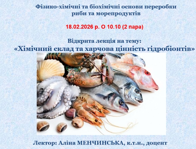 Відкрита лекція на тему: «Хімічний склад та харчова цінність гідробіонтів»