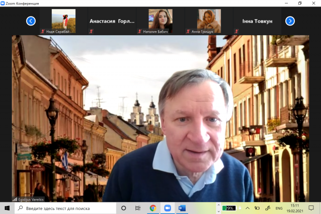 19 лютого 2021 р. викладачі кафедри економічної теорії д.е.н., професор Байдала В.В., д.е.н., доцент Бутенко В.М., а також аспіранти та студенти факультету аграрного менеджменту відвідали відкриту лекцію представника Литви у Європарламенті Егідіуса Варейкіса на тему «Глобальне лідерство XXI століття», організовану кафедрою філософії та міжнародної комунікації. У форматі невимушеного спілкування було розглянуто надзвичайно важливі питання, що стосувалися сучасних проблем демократії у світі та Україні, перспектив розвитку Європейського Союзу, країн-світових лідерів тощо, також торкнулися актуальних проблем пандемії COVID 19 та перспектив вакцинації. Хочеться відзначити надзвичайний професіоналізм лектора, що зробив цей захід безумовно цікавим і викликав бажання подальших зустрічей.