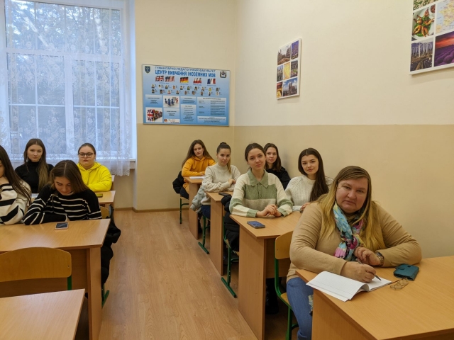 19 жовтня 2023 року відбулося відкрите практичне заняття старшого викладача кафедри іноземної філології і перекладу Конончук Інни Валеріївни для студентів 3 курсу спеціальності «Міжнародні відносини, суспільні комунікації і регіональні студії» з дисципліни «Іноземна мова за професійним спрямуванням» на тему „Internationale Konferenz. Erste Kontakte.“