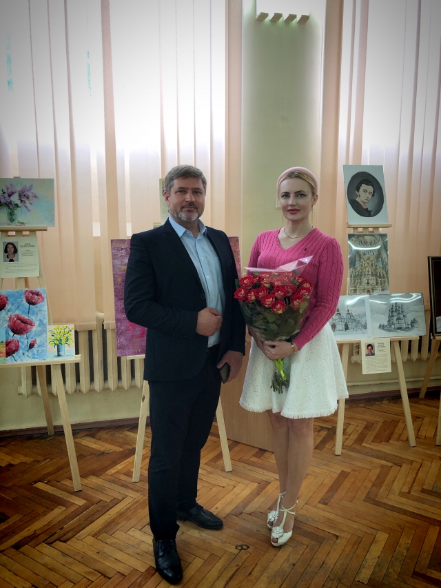 Художник Василь Моісєєв презентує дві свої роботи на тему весни, природи і змін на краще. Василь Моісєєв є тією людиною, котра ініціювала заснування цієї доброї мистецької традиції — зустрічі із колегами-науковцями у форматі вернісажів та творчих заходів. Разом ми єдина славетна родина НУБіП України.