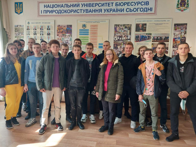 Після того як зібралися всі студенти групи сама директор провела нам дуже цікаву змістовну екскурсію де перед нами поставав наш НУБіП від ідеї створення навчального закладу на голосіївських пагорбах до теперішнього часу. Ми разом ніби переживали тріумфи досягнень рідного навчального закладу і розпач його втрат, зокрема руйнування під час другої світової війни. Ми також дізнались про те, що наш перший корпус з висоти пташиного польоту нагадує форму тризуба як символ нашої незалежності.