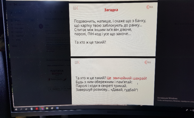 Програма онлайн-заходів в межах Тижня кібербезпеки від НБУ була проведена протягом тижня від 7 до 11 листопада 2022 року. Студенти гуртка не пропустили цієї нагоди із задоволенням відвідали даний онлай-захід. Це були цікаві вебінари від Тетяни Машлаковської, головної експертки Управління зв’язків з громадськістю та фінансової обізнаності НБУ та Раїси Федоровської, керівниці ЕМA Academy та Школи кібербезпеки Асоціації ЄМА. Протягом 7-9 листопада було заслухано вебінари від Тетяни Машлаковської головної експертки Управління зв’язків з громадськістю та фінансовою обізнаності НБУ. 7 листопада було ознайомлено із правилами платіжної безпеки та видами шахрайства. Дізналися про: види шахрайства та приклади схем шахрайства; платіжну банківську картку: які реквізити картки можна повідомляти, а які ні; смартфон та методи захисту смартфона від шахраїв; як створити складні та унікальні паролі; ресурси для поліпшення власних навичок із платіжної безпеки. 9 листопада був вебінар на тему “Кібербезпека та види шахрайства у воєнний час”. Учасники дізнаються про: актуальні схеми шахрайства у воєнний час; як захистити кошти на платіжній картці; як захистити акаунти, смартфони та комп’ютери; правила безпечних онлайн-покупок; телефонне шахрайство та ознаки телефонної розмови з шахраєм; що таке фінансовий номер телефону та як його захистити; схеми крадіжки фінансового номера телефону; ресурси для поліпшення власних навичок із платіжної безпеки.