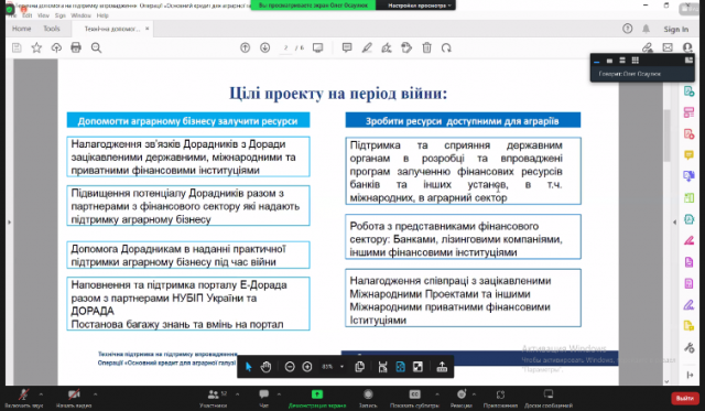 Черговий вебінар із серії "Агробізнес під час війни" був присвячений найважливішим питанням сьогодення. Адже нині розвиток підприємництва характеризується рядом проблем та викликів, які стоять перед аграріями. Це проблеми з логістикою, низькі закупівельні ціни, зростання виробничих витрат на вирощування сільськогосподарських культур призводить до необхідності оптимізації організаційно-економічних підходів до ведення бізнесу в аграрному секторі економіки. Важлива роль відводиться забезпеченню стабільного фінансування виробничих процесів. Крім банківського кредитування аграрії мають можливості залучення коштів державних програм та міжнародних організацій. Модераторатором вебінару на тему “Підприємництво в аграрному секторі та можливості його фінансового забезпечення” був проф. каф. організації підприємництва та біржової діяльності НУБіП України Віталій Радько. Було заслухано виступ на тему “Сучасні тенденції розвитку рослинництва України” заступник директора агробізнесу з виробництва, Кернел Шитюк Костянтин.