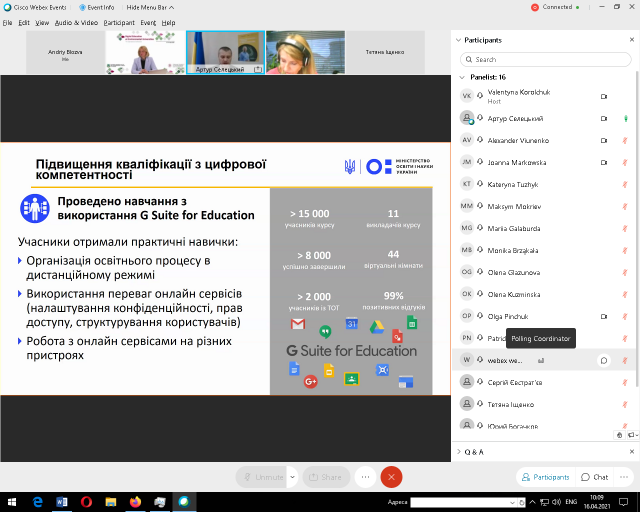 За програмою організатори конференції запропонували учасникам долучитись до участі у трьох тематичних сесіях та двох воркшопах. Онлайн зустрічі були організовані із застосуванням відеоконфернції Cisco Webex Event, що дозволяє забезпечити реєстрацію учасників та виділення окремо - пулу доповідачів та учасників з відповідними функціональними обмеженнями.