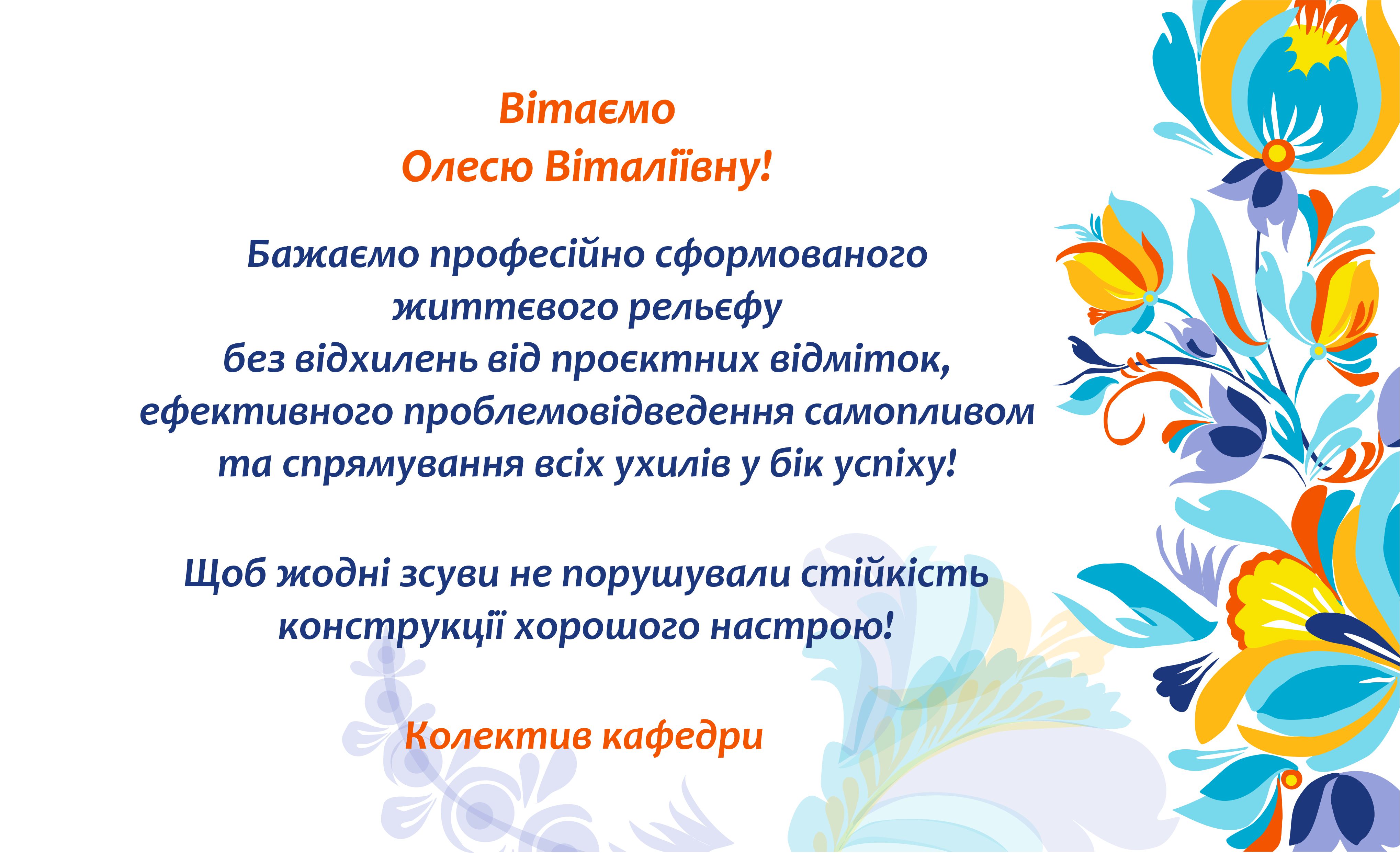 Вітання Олесі Віталіївні в День народження