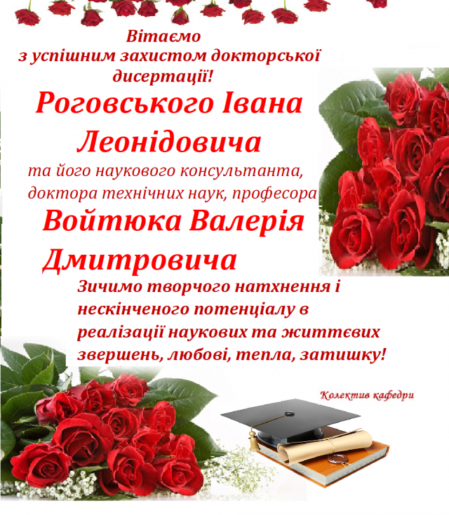 ВІТАЄМО ІВАНА ЛЕОНІДОВИЧА РОГОВСЬКОГО З УСПІШНИМ ЗАХИСТОМ ДОКТОРСЬКОЇ ДИСЕРТАЦІЇ!!! 18 травня 2021 року 13:27 - 13:27