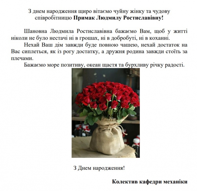 Вітаємо Примак Людмилу Ростиславівну з днем народження!