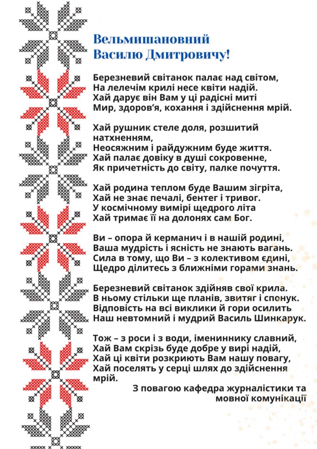 Вітаємо шановного Василя Дмитровича Шинкарука з Днем народження!