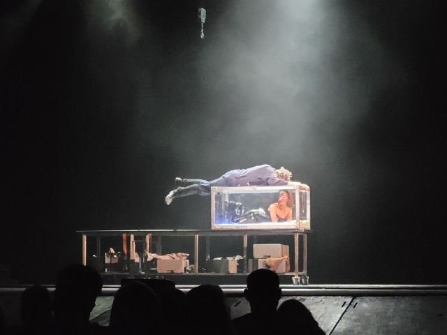 Атмосферність і містичність вистави досягнена блискучим поєднанням акторської гри, монохромної витонченості декорацій, тонкогаптованого мережива рухів, красивого світла і дивовижного звукового оформлення (це стосується й потрясаючого музичного ряду, й тих надлюдських звуків, що видавали голосові апарати цілком реальних людей – акторів).