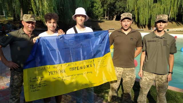 А в цей же час у відзначенні Дня прапора брав участь і старший викладач кафедри культурології Сергій Дудко, який зараз служить у лавах ЗСУ. У місті, біля якого розміщена військова частина, Сергій Віталійович з іншими воїнами дарували містянам і гостям прапори на знак підтримки ЗСУ та в пам'ять про загиблих на війні воїнів та мирних українців.