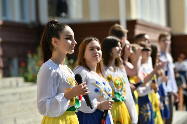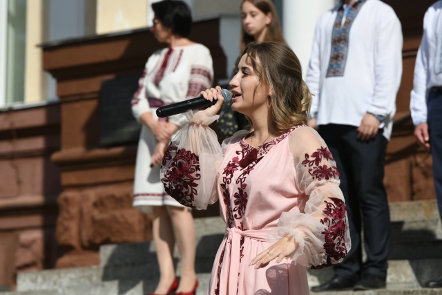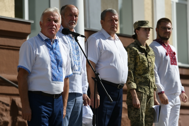 До присутніх із вітальним словом звернувся ректор нашого славного університету Станіслав Миколайович Ніколаєнко. Він нагадав історію державного прапора, говорив про місце і роль нашого університету у формуванні продовольчої безпеки України, вихованні у молоді національної свідомості, духовного спротиву ворогу. Не забув і про результати цьогорічної вступної кампанії, за підсумками якої НУБіП входить у ТОП-10