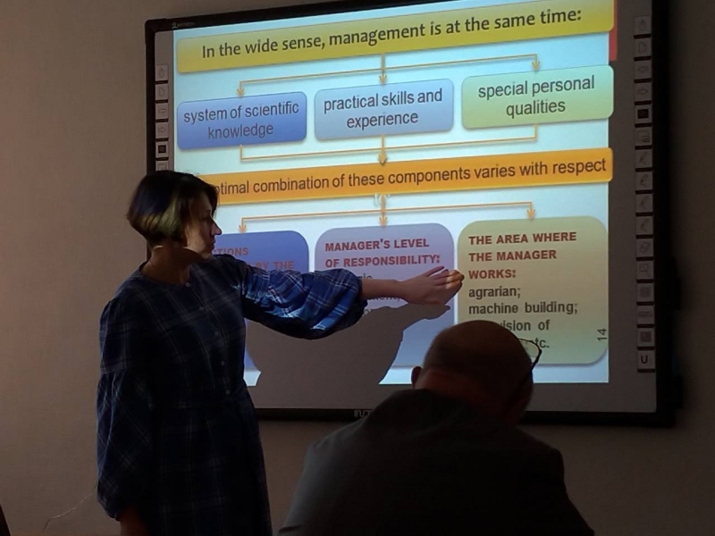 Якість викладання матеріалу лекції прийшли оцінити не тільки викладачі кафедри, але і запрошені фахівці: в галузі інженерного менеджменту – д.е.н. завідувач відділу ринку матеріально-технічних ресурсів ННЦ «ІАЕ» НААН Захарчук О.В., в галузі машинобудування – д.т.н., проф, зав. кафедри конструювання машин НУБіП Ловейкін В.С., спеціаліст із іноземної мови – к.п.н., доцент кафедри англійської мови для технічних та агробіологічних спеціальностей НУБіП Березова Л.В. На лекції був присутній заступник декана механіко-технологічного факультету к.т.н, доц. Сівак І.М. Лекція проводилася на англійській мові для слухачів студентів за обміном з Туреччини.