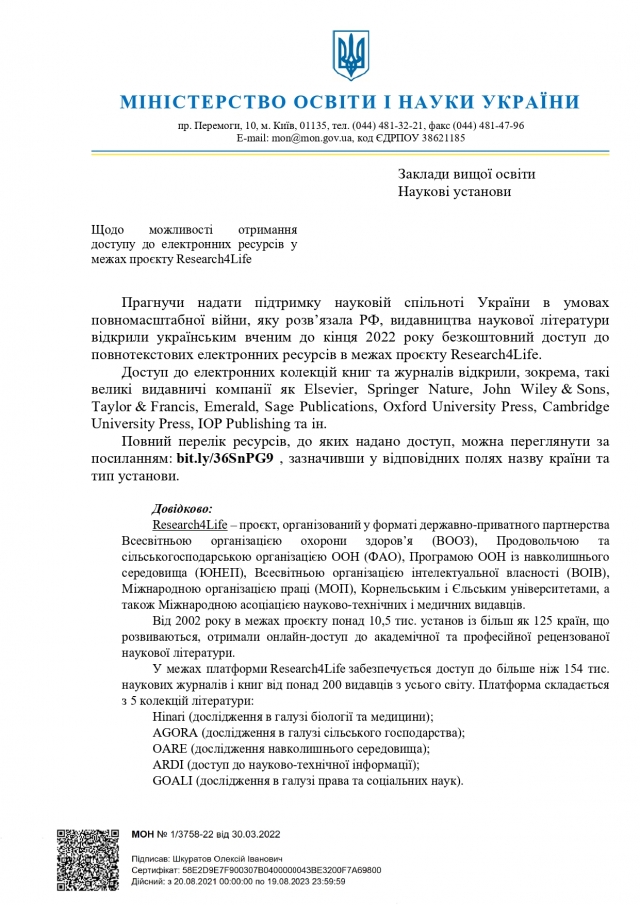Видавництва наукової літератури відкрили українським вченим безкоштовний доступ до повнотекстових електронних ресурсів в межах проєкту Research4Life