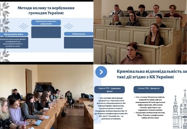 Особливу увагу приділили правовим наслідкам для тих громадян, які можуть бути залучені до таких злочинів. Викладачі підкреслили важливість зміцнення правової свідомості у студентів, адже кожен з них, як майбутній правник, повинен розуміти свою роль у запобіганні подібним загрозам.