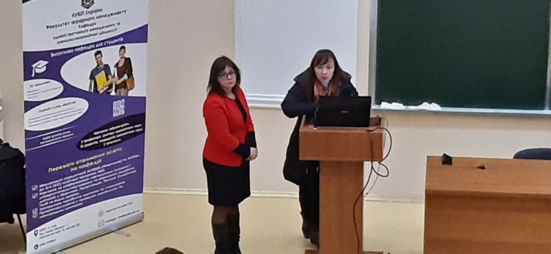 На зустрічі з абітурієнтами д.е.н., професор Байдала Вікторія Володимирівна розповіла про особливості навчального процесу на кафедрі економічної теорії та можливості продовження навчання в магістратурі та аспірантурі. Було акцентовано увагу на діяльності навчально-наукової лабораторії "Економічна теорія та біоекономіка".