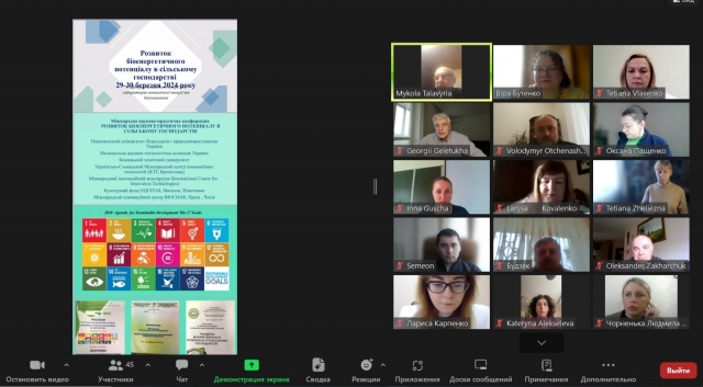 Науково-практичну конференцію відкрив д.е.н., професор, завідувач кафедри економічної теорії НУБіП України Микола Петрович Талавиря. Він відмітив важливість питань, які обговорюються щорічно на семінарах і конференціях з питань біоенергетики. Начальник науково-дослідної частини Університету, д.с-г.н. професор, член-кореспондент НААН України Отченашко Володимир Віталійович привітав учасників онлайн-семінару, звернув увагу присутніх на важливість біоенергетики, побажав плідної роботи.