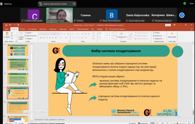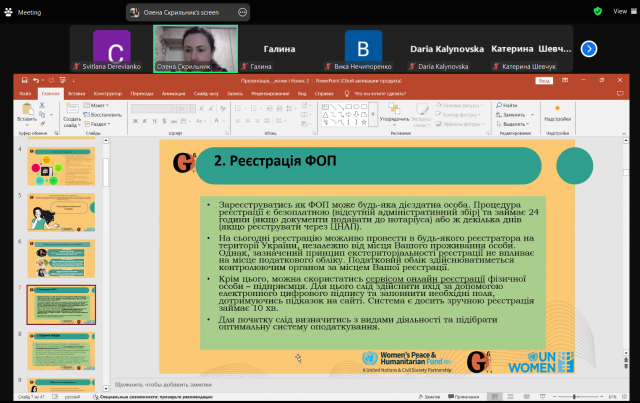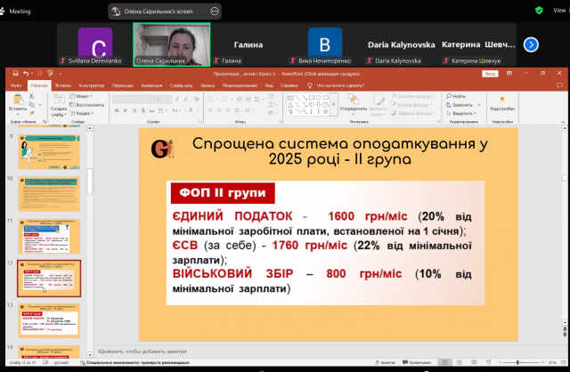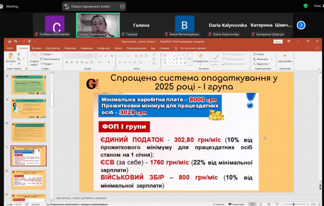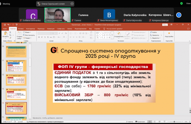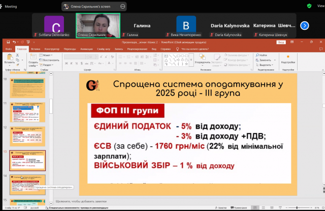 Окремі інформаційні сесії були присвячені питанням організації трудових відносин в умовах воєнного стану, заснуванню власної справи, порядку та процедурі реєстрації фізичної особи-підприємця (ФОП), які зацікавили доценток кафедри обліку та оподаткування Олену Боярову, Тамару Гуренко, Світлану Дерев’янко, Наталію Кузик, Людмилу Мельянкову та Катерину Шевчук. Питання, які винесені на обговорення є дуже актуальними в теперішніх умовах.