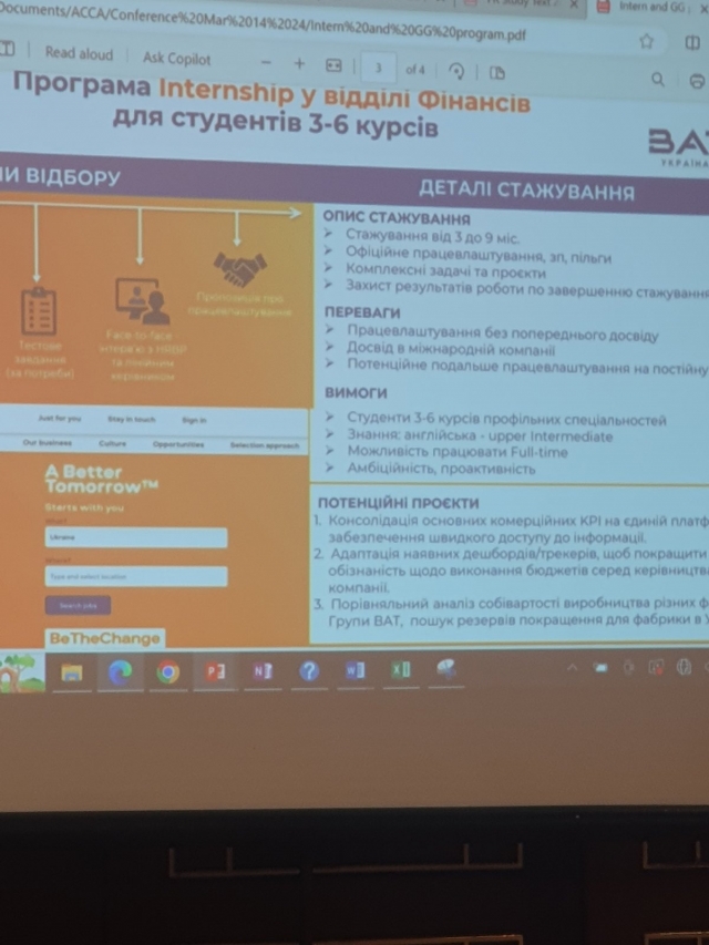 Організатори представництва АССА в Україні запросили до проходження практики та стажування здобувачів вищої освіти старших курсів спеціальності 071- Облік і оподаткування, що буде їх стартовим майданчиком для подальшого працевлаштування у міжнародних компаніях.