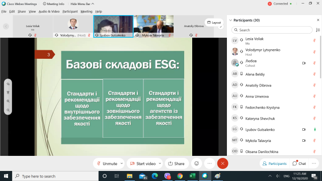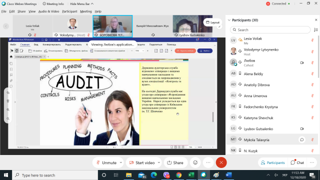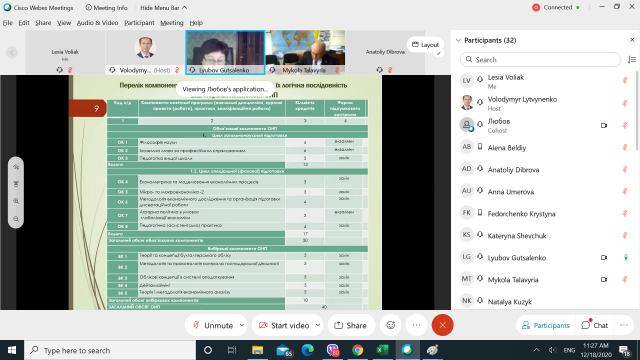 Викладачі кафедри статистики та економічного аналізу взяли участь у роботі круглого столу «Візія стейкхолдерів у забезпеченні якості підготовки докторів філософії із спеціальності «Облік і оподаткування», який відбувся 18 грудня 2020 року з використанням сервісу Webex. На зустрічі були присутні д.е.н, професор, завідувач кафедри Лазаришина І.Д., д.е.н, професор Савчук В.К., к.е.н, доценти Богданюк О.В., Собченко Т.С., Симоненко О.І., к.е.н., старший викладач Воляк Л.Р.