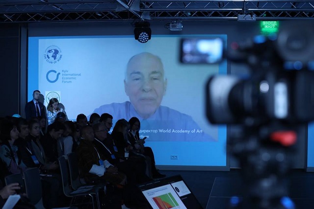 На конференції модератором заходу було оприлюднено прогнози для України до 2050 року (журнал «The Economist») про те, що кількість жителів становитиме 30 млн, а зростання ВВП щороку буде збільшуватися лише на 1%. Професор зауважив, що у 2008 році на Економічному форумі у Давосі Україні у 2050 році пророкували 19 млн жителів. Усі ці прогнозування у нього викликають лише посмішку, адже він їх називає «астрологічним прогнозування економічних планів» та не вірить у їх здійснення.