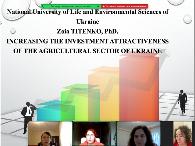 Докторант кафедри фінансів Зоя Тітенко виступила із доповіддю на тему: «Зростання інвестиційної привабливості аграрного сектору України». Повномасштабна війна стала новим і визначальним чинником впливу на рівень ділової активності й інвестиційного клімату в Україні. Воєнна агресія проти України очікувано очолила перелік чинників, що негативно вплинули на інвестиційний клімат, на другому місці опинилась корупція, на третьому — слабка судова система. Серед основних проблем, що негативно впливають на інвестиційну привабливість стали: тіньової економіки, пошкоджене майна, трудова міграція, валютні обмеження, ціни на енергоносії, часті зміни у законодавстві. До позитивних факторів, які забезпечують зростання інвестиційної привабливості можна віднести надання Україні статусу кандидата на вступ до Євросоюзу, скасування мит і квот на український експорт й «транспортний безвіз» із ЄС.