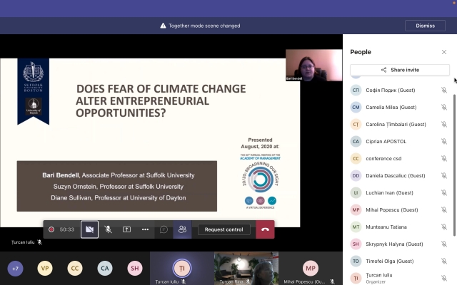 Наступним доповідачем був Баррі Л. Бенделл, доцент (Саффолкський університет, Бостон, США). Спікер у своїй доповіді зупинився на питаннях зміни клімату та підприємницьких можливостей. Доцент Баррі Л. Бенделл відмітив, що глобальна зміна клімату стала однією з найнагальніших екологічних проблем, до вирішення якої прикута увага людства. Її наслідками є небезпечні погодні катаклізми, різкі зміни погоди, паводки, повені, сильні вітри, зливи і дощі, град, посухи, що призводять до значних екологічних та економічних збитків у всьому світі. Адаптація до глобальної зміни клімату є процесом пристосування у природних чи людських системах у відповідь на фактичні або очікувані кліматичні впливи, що дозволить знизити їх негативні наслідки та скористатися сприятливими можливостями. Доповідач зауважив на необхідності врахування змін клімату у підприємницькій діяльності.