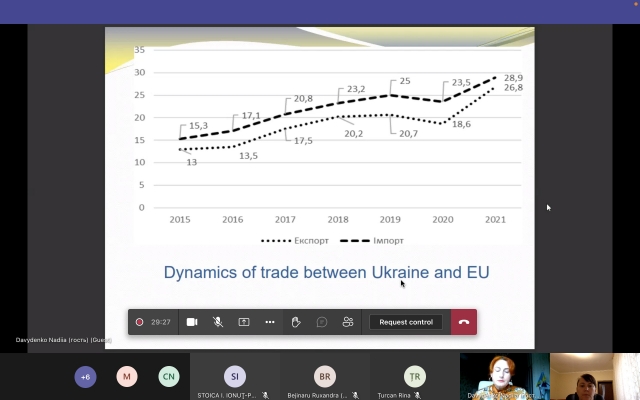 Надія Давиденко розповіла про виклики, які виникли внаслідок російської агресії. Загарбницька війна росії проти України значно збільшила ризики продовольчої безпеки, спричинила збої в сільськогосподарському виробництві, ланцюгах поставок і торгівлі, які призвели до безпрецедентного рівня світових цін на продукти харчування та добрива. Ситуація на світових аграрних ринках, що склалася на середину 2022 року, показала важливість українського аграрного сектору для глобального ринку сільськогосподарської продукції в цілому, та для економіки Європейського Союзу, зокрема.
