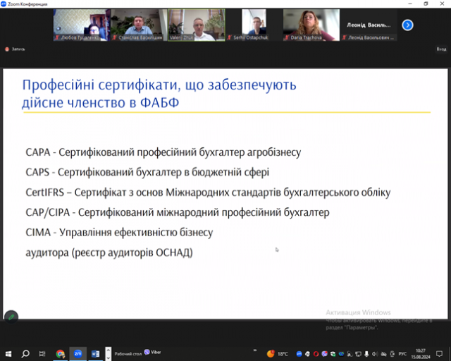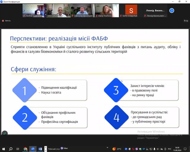 15 серпня 2024 р. викладачі та аспіранти кафедри обліку та оподаткування взяли участь у XVI черговому з'їзді Федерації аудиторів, бухгалтерів і фінансистів АПК України (ФАБФ) – галузевої професійної громадської організації, що об’єднує фахівців економічних служб підприємств агропродовольчого сектору економіки та провідних науковців.