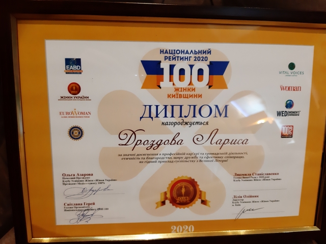 Викладачка кафедри журналістики та мовної комунікації гуманітрано-педагогічного факультету НУБіП України – Дроздова Лариса одержала диплом Національного рейтингу «ТОП-100 видатних жінок Київщини» в номінації «Особистий бренд» – TM DROZDOVA.