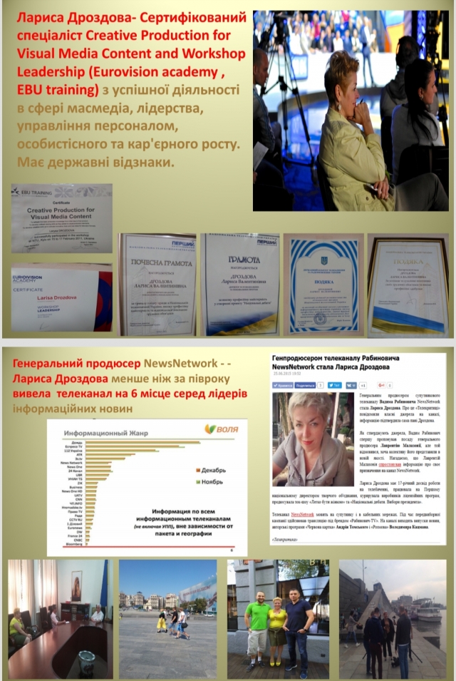 Свій нелегкий шлях до своєї мети Лариса Дроздова почала з Національної телекомпанії України. Саме там, працюючи адміністратором телевізійних передач дійшла по кар'єрним сходинкам до генерального продюсера телеканалу NewsNetwork. Весь час працюючи над собою та удосконалюючи свою майстерність Лариса Дроздова створила свій бренд «TM Drozdova». В медійному просторі «TM Drozdova» означає професіоналізм, відповідальність, ефективність, креативність.