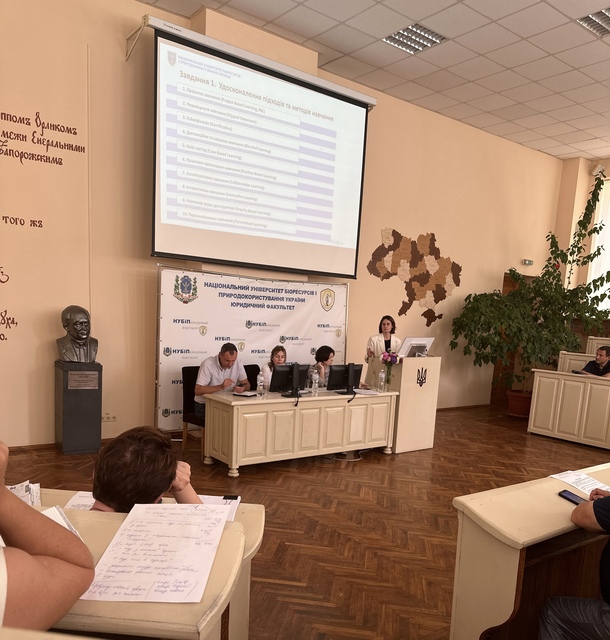Декан юридичного факультету Олена Яра, відкриваючи засідання, звернула увагу на виклики, які стоять перед факультетом у зв'язку з воєнним станом, який введений в Україні. Обговорювалися питання адаптації освітніх програм до нових умов, зокрема забезпечення безперервності навчання та підтримка студентів, які перебувають у зонах бойових дій, закордоном або мають обмежений доступ до інтернету.